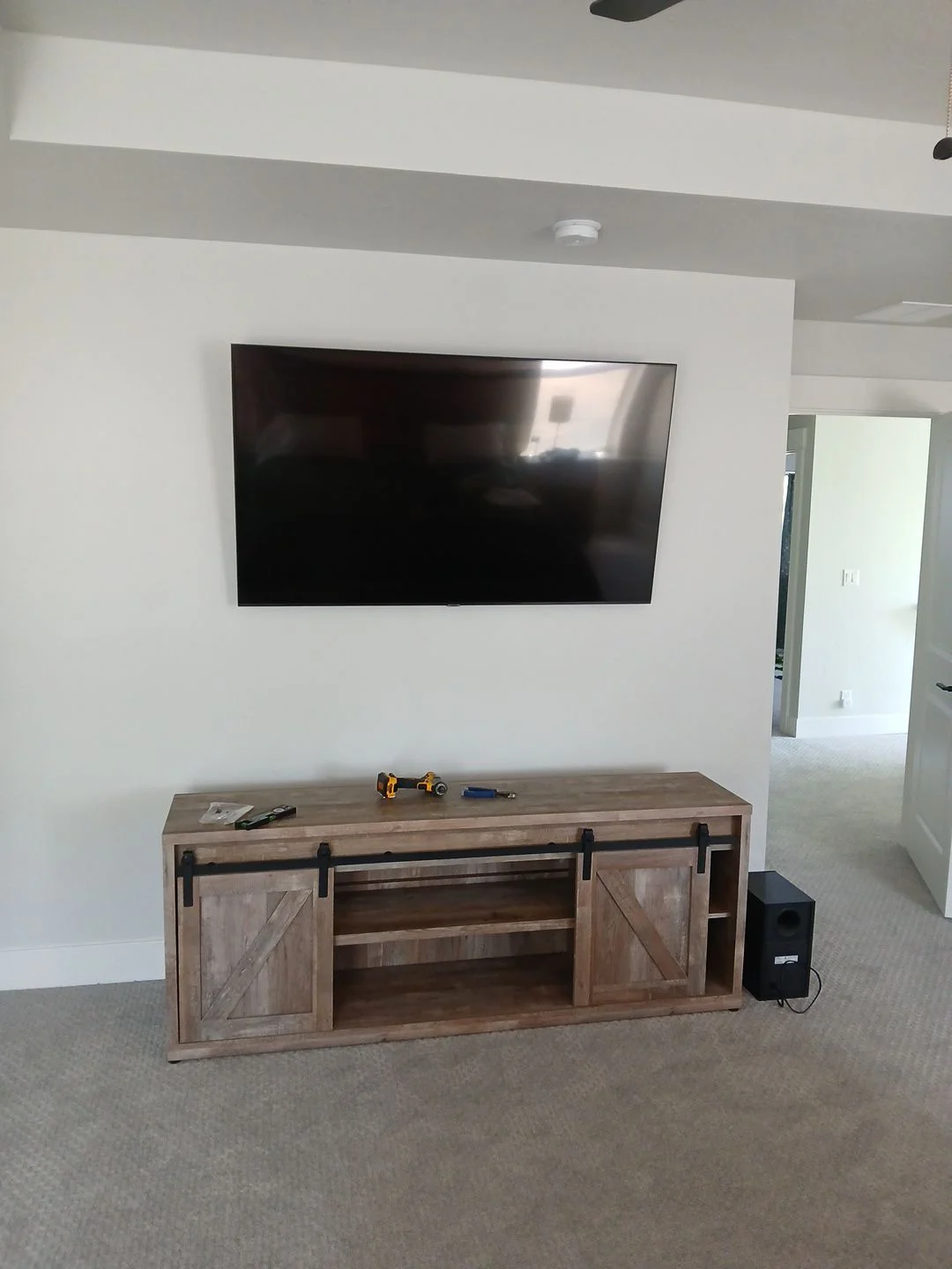 This comprehensive TV mounting project in Nampa, Idaho showcases expert installation across six different spaces, including the garage, living room, master suite, media room, patio, mom's room, and son's room. Each area received professional mounting for large-screen TVs, ensuring robust support, optimal viewing angles, and aesthetics tailored to each room's layout—including a specialized ceiling mount on the patio for flexible entertainment. A key feature of this installation was advanced in-wall wire concealment, which seamlessly integrated power and HDMI cabling behind drywall, eliminating clutter and enhancing the clean, modern look of each TV setup. Our skilled team utilized high-grade mounts tested for durability and safety, providing peace of mind and reliability for the homeowner. As a repeat customer, this client benefited from our streamlined process, exceptional service, and precise customization for every living space.